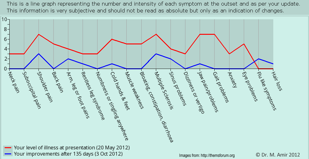 After only three months of treatment my 'MS' symptoms are disappearing. A constant symptom for 22 years, L'hermitte's sign has completely gone.
