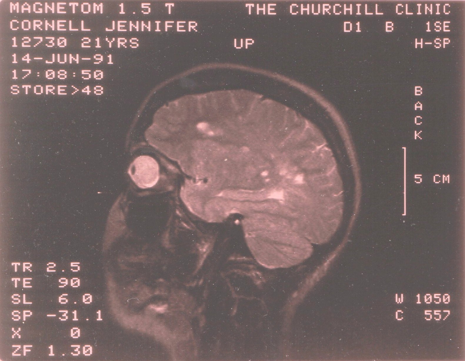 These are some of the MRI scan pictures that were taken before my MS diagnosis in 1991 when I was just 22 years old.